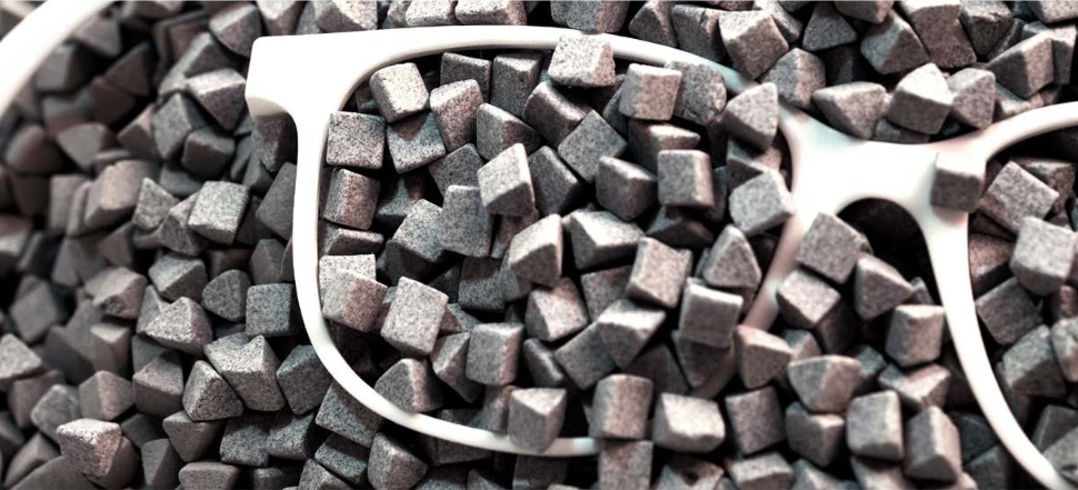 Nach dem Druck befreien wir jede Brille in Handarbeit mit Pinseln von Pulverresten. Anschließend wird jedes Modell glasperlengestrahlt und mehrere Stunden in einem Trowalisator gleitgeschliffen, um die Oberfläche weiter zu verdichten und zu glätten.